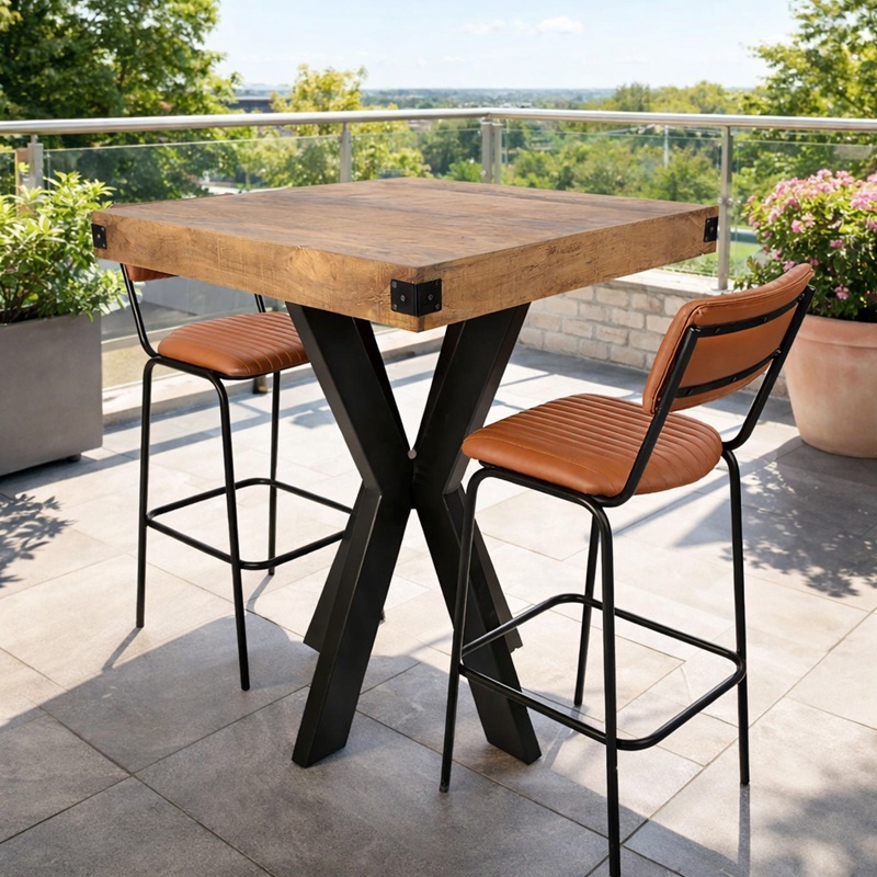De bartafel BARRETH is een industriële statafel met een zwart gelakt metaal frame en een dik mango houten topblad. Deze stoere bartafel wordt veelvuldig ingezet in de horeca maar zal ook zeker in een mancave niet misstaan.