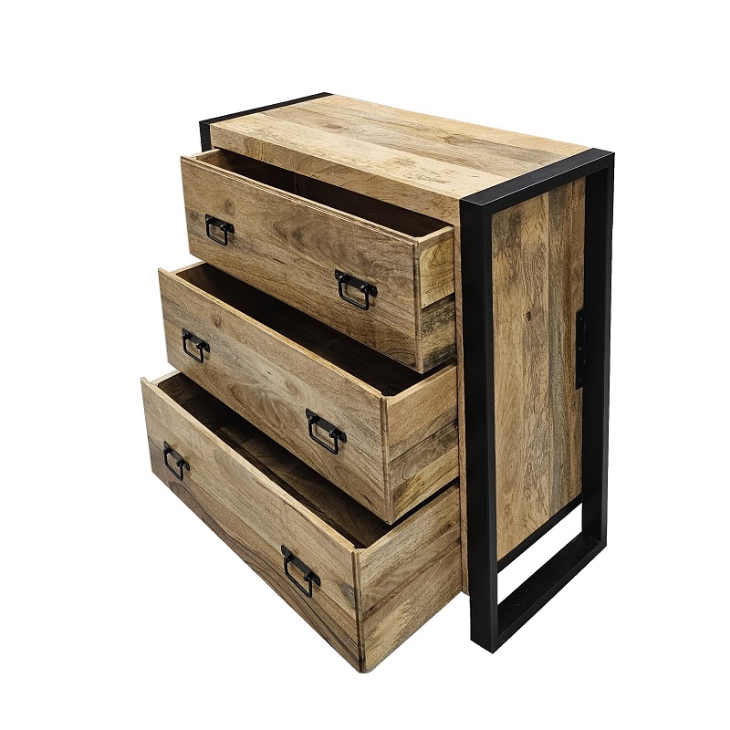 Deze dressoirkast JUSTIN van mango hout heeft een stalen onderstel en 3 uittrekbare laden. Met zijn retro look zal dit dressoir een mooie toevoeging zijn voor elk vintage interieur. De Justin wordt gemonteerd geleverd en is klaar voor gebruik.