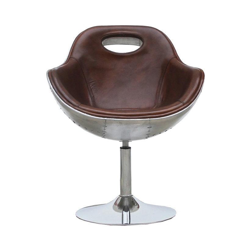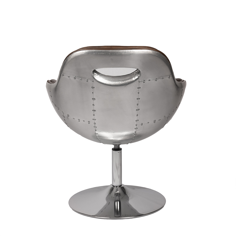 De SHELBY Aviator retro look stoel kan zowel de functie van eetkamerstoel, vergaderstoel of gewoon als relax fauteuil vervullen. Door zijn industriële uitstraling en de knipoog naar de vliegtuigindustrie zal deze 360 graden draaiende fauteuil met lederen bekleding een blikvanger zijn in elk vintage, industrieel, aviation styl maar ook in een modern interieur.